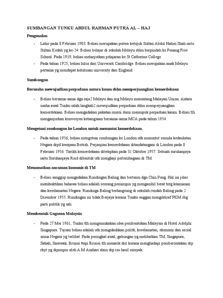 Sumbangan Tunku Abdul Rahman Putra Al Pdf