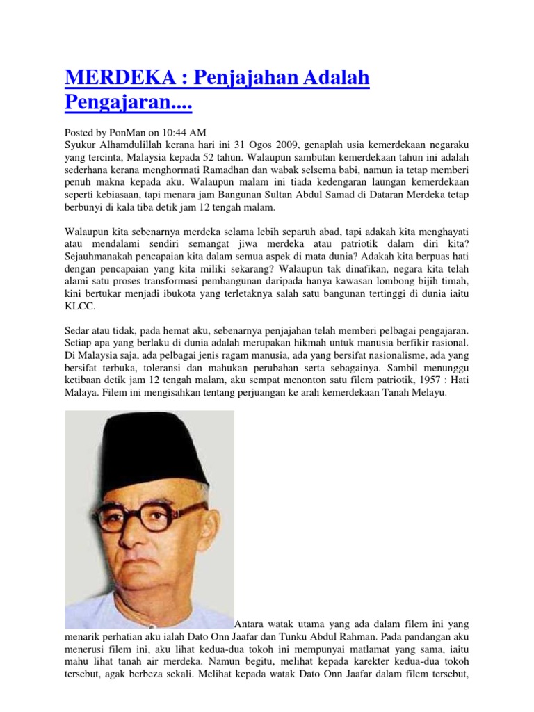 As such he is often referred to as Father of Independence Bapa Kemerdekaan or Father of Malaysia Bapa Malaysia. Bincangkan faedah ekonomi sosial dan politik yang diperoleh Malaysia dengan menyertai OIC. Sumbangan dan pengorbanan yang beliau curahkan bagi kesejahteraan negara ini sewajarnya diambil ikhtibar dan diabadikan agar dapat dihayati oleh generasi akandatang.